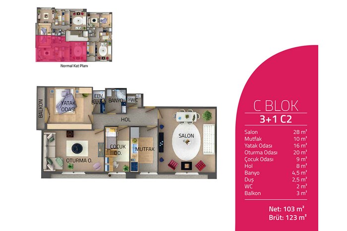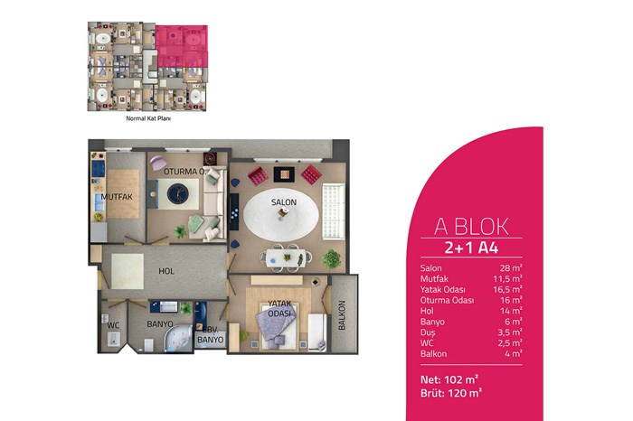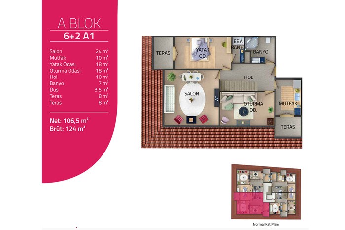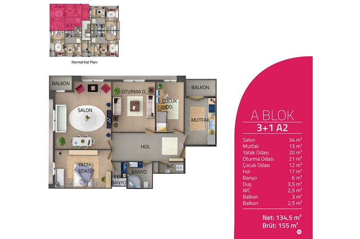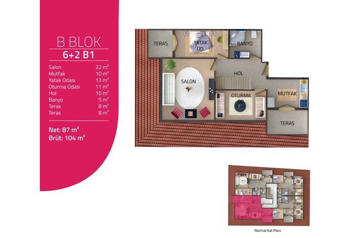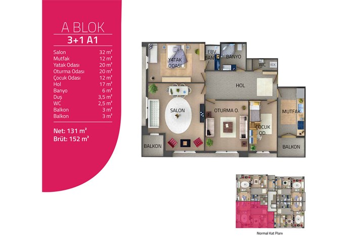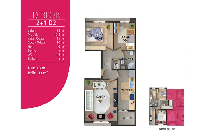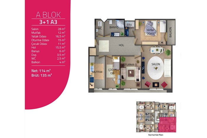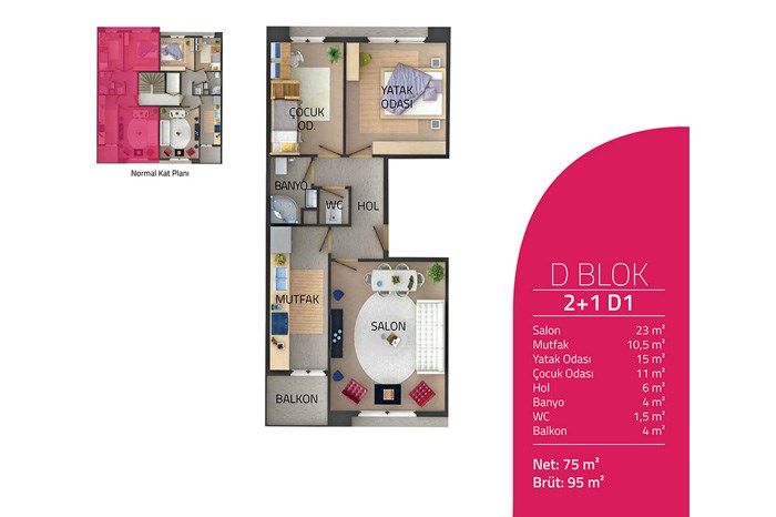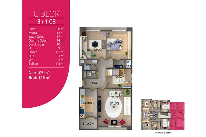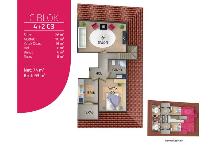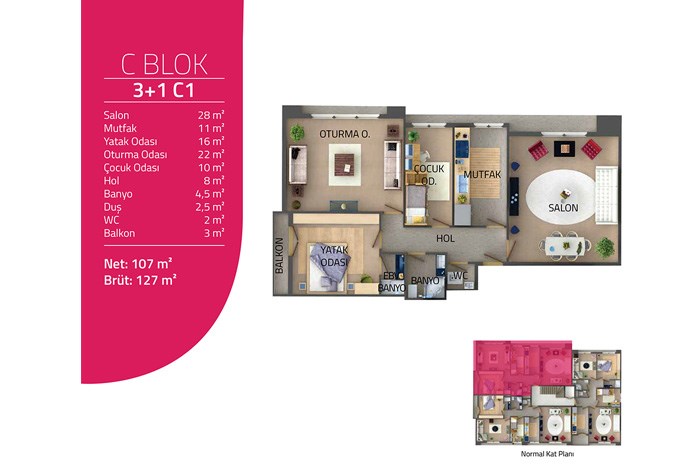 Yazıcıoğlu Site İstanbul projesinde 2+1 daireler 73 ila 102 metrekare, 3+1 daireler 103 ila 135 metrekare arasında farklılık gösteriyor. Dubleks daireler projenin üst katlarında bulunuyor.