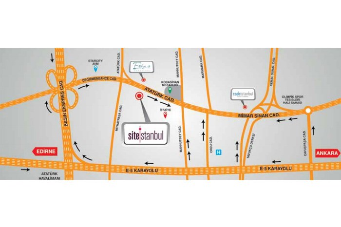 Site İstanbul projesi Tem bağlantı yoluna 1 kilometre, Atatürk Havalimanı'na ve metroya 2 kilometre, deniz otobüsüne 5 kilometre, Dünya Ticaret Merkezi'ne 2 kilometre mesafede konumlanıyor.