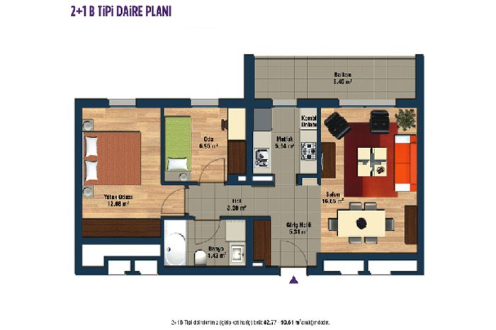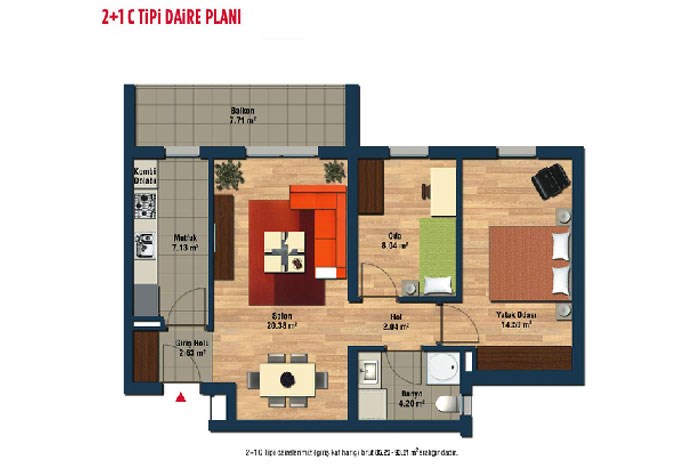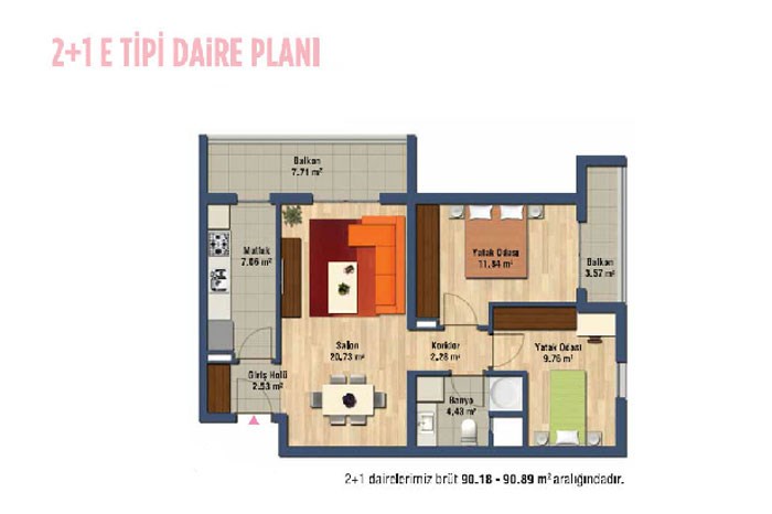 2 oda 1 salon daireler : 278 bin lira ile 316 lira arasında değişen ve