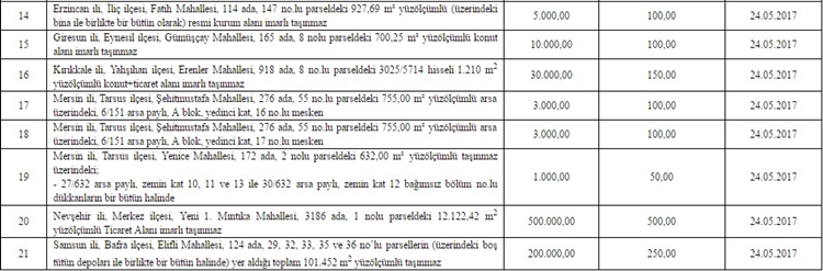 Sümer Holding, Türkiye genelinde mülkiyetinde bulunan 21 adet gayrimenkulü satışa çıkartıyor...Sümer Holding Antalya, Ankara, Amasya, Aydın, Balıkesir, Bingöl, Burdur, Çorum, Erzincan, Giresun, Kırıkkale, Mersin, Nevşehir ve Samsun illerinde yer alan gayrimenkulleri satış yöntemiyle özelleştiriyor. Satış ihalesi pazarlık usulü ile yapılacak.