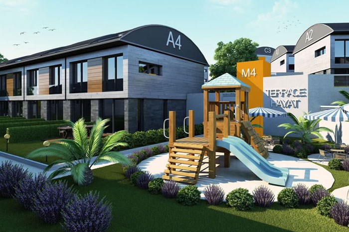 - Sarıyer Zekeriyaköy'de inşa edilen Terrace Hayat'ta evler 2 oda 1 salon bahçe ve çatı dubleksi ve 3 oda 1 salon tripleks olarak inşa ediliyor.