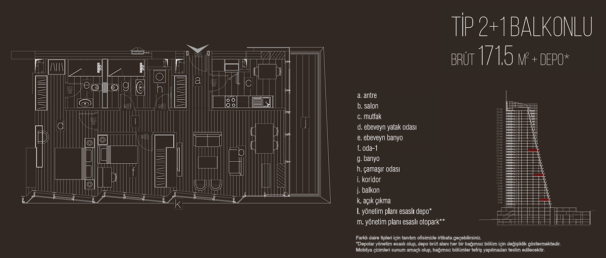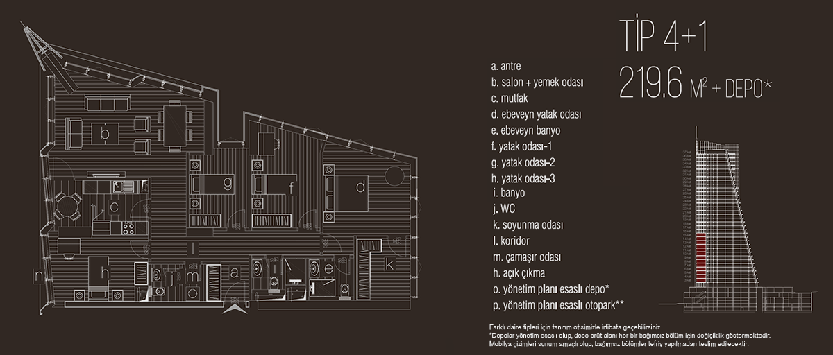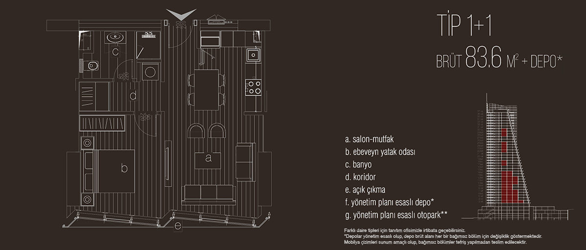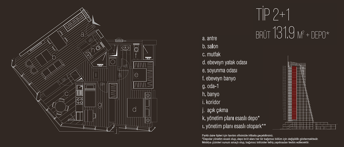 Teras Lotus projesinde 1+1, 1+1 balkonlu, 2+1, 2+1 balkonlu, 3+1 balkonlu, 4+1 daire seçenekleri yer alıyor. Projede 1+1 daireler brüt 83,6 metrekare, 1+1 balkonlu daireler brüt 97,2 metrekare, 2+1 daireler brüt 131,9 metrekare, 2+1 balkonlu daireler brüt 171,5 metrekare, 3+1 balkonlu daireler brüt 218 metrekare, 4+1 daireler 219,6 metrekare büyüklüklerle dizayn edildi.