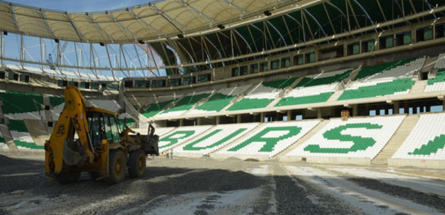 Bursaspor taraftarının merakla beklediği Timsah Arena'da zemin çalışmaları başladı.