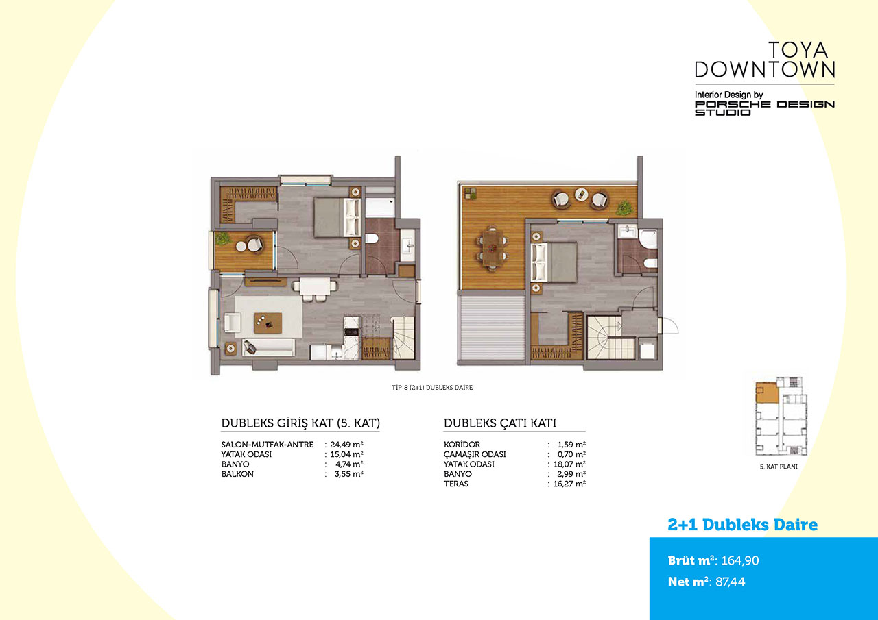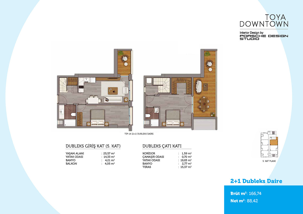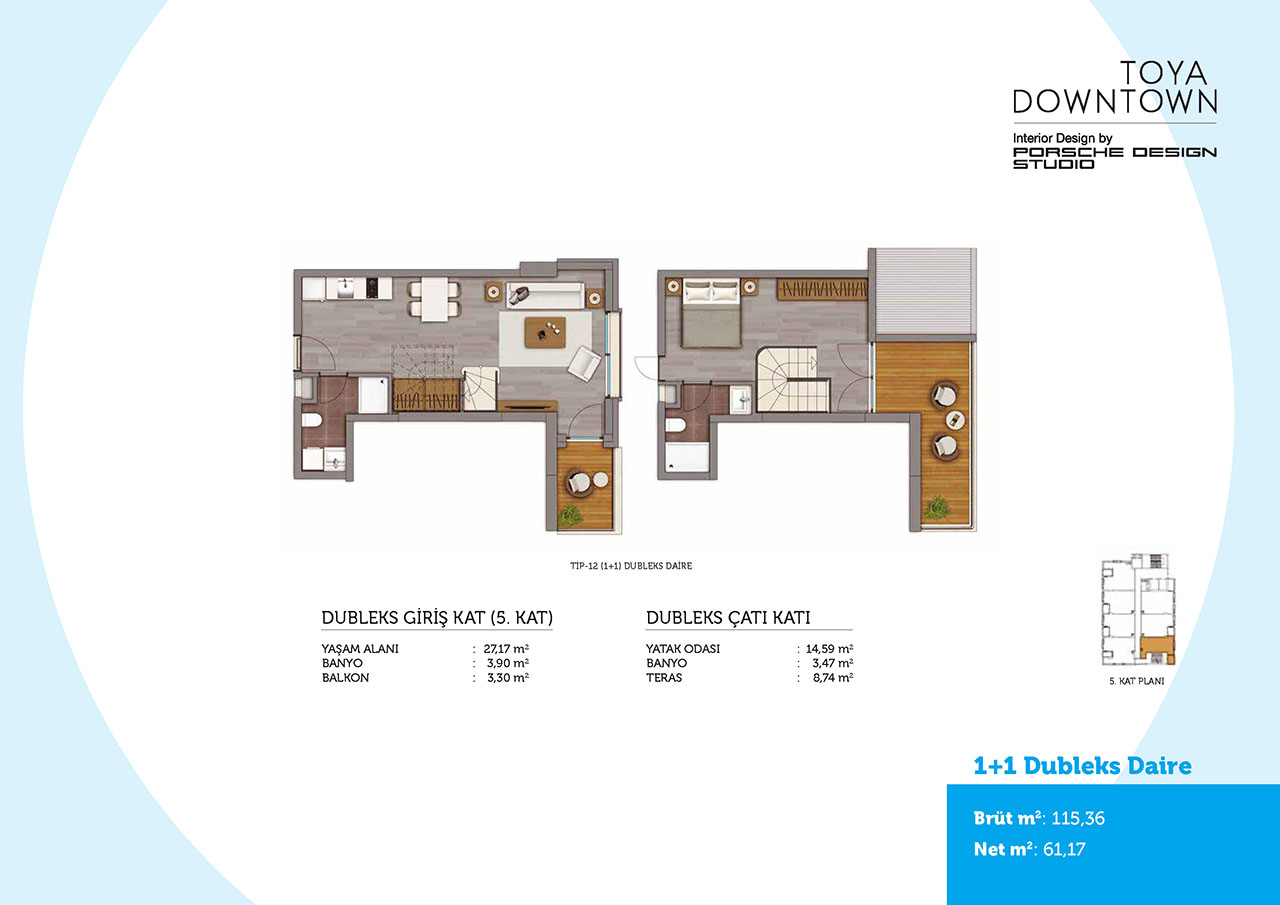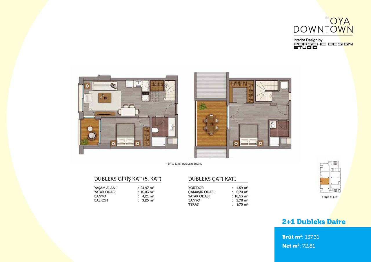 Konutların yanı sıra 6 adet ticari biriminde yer aldığı Toya Downtown projesinde bir ilk gerçekleştirildi. Porsche Desing Studio imzalı dairelerde alanları 16 ila 23 metrekare arasında değişen ofis alanı bulunuyor.