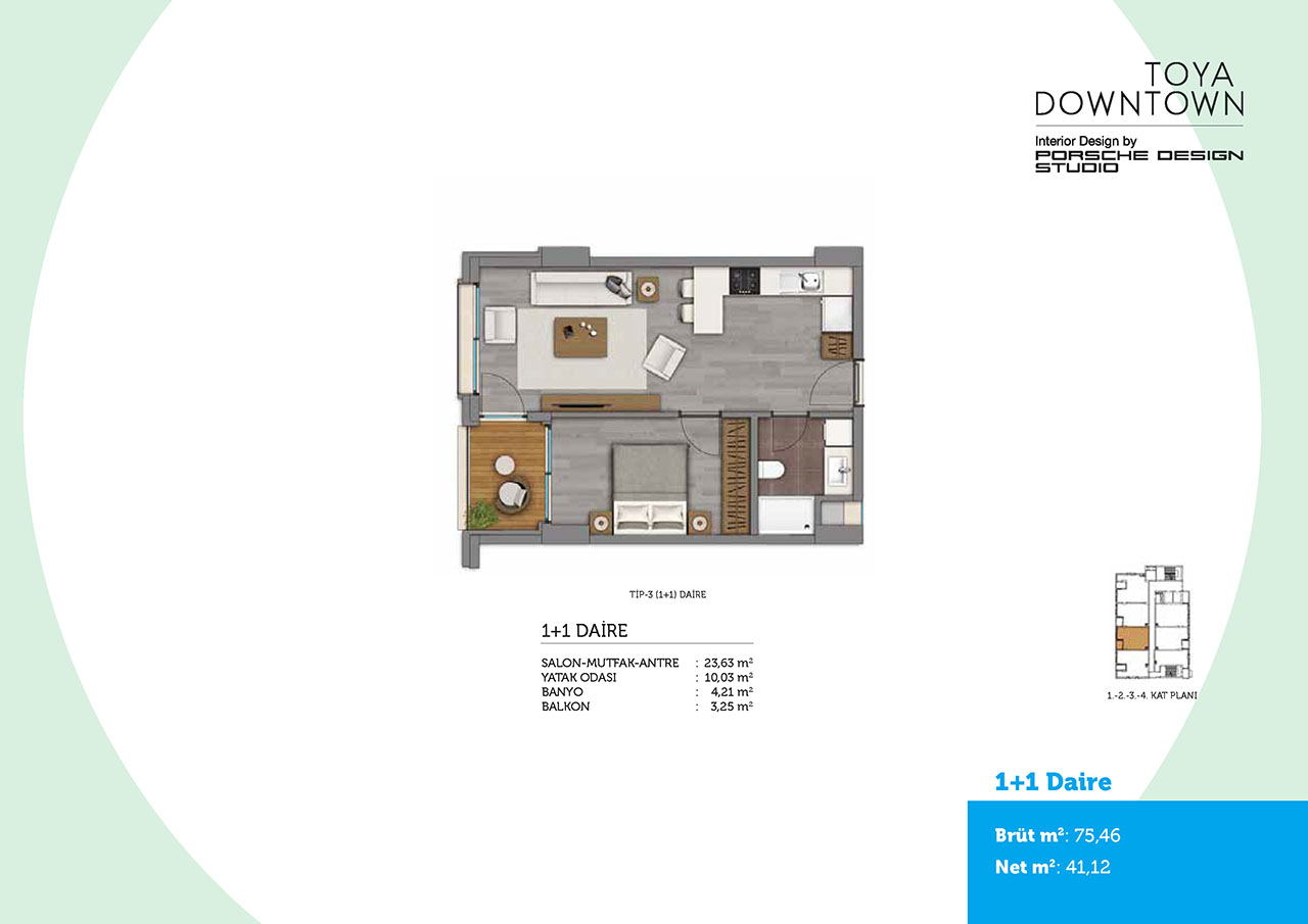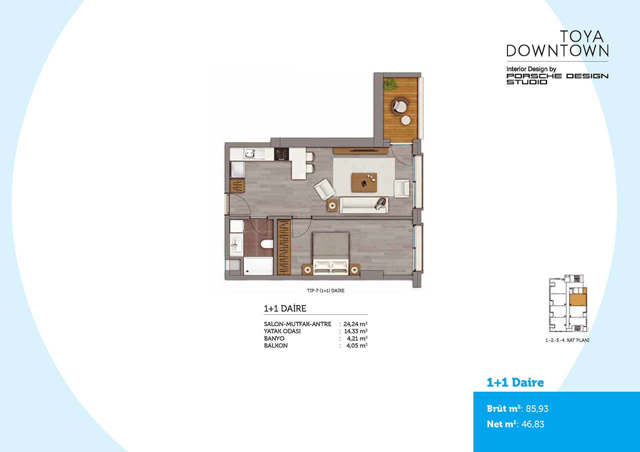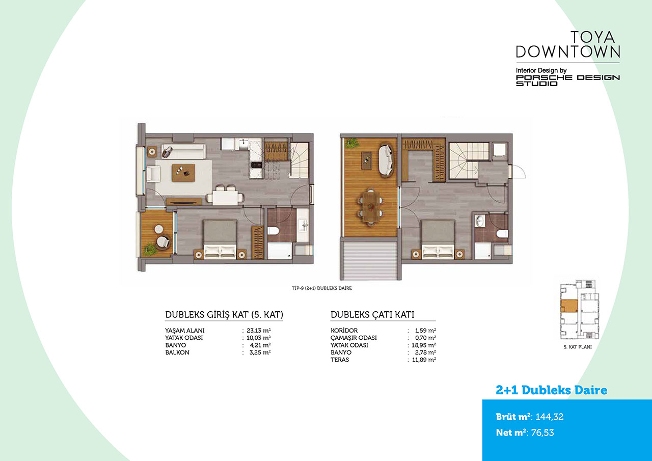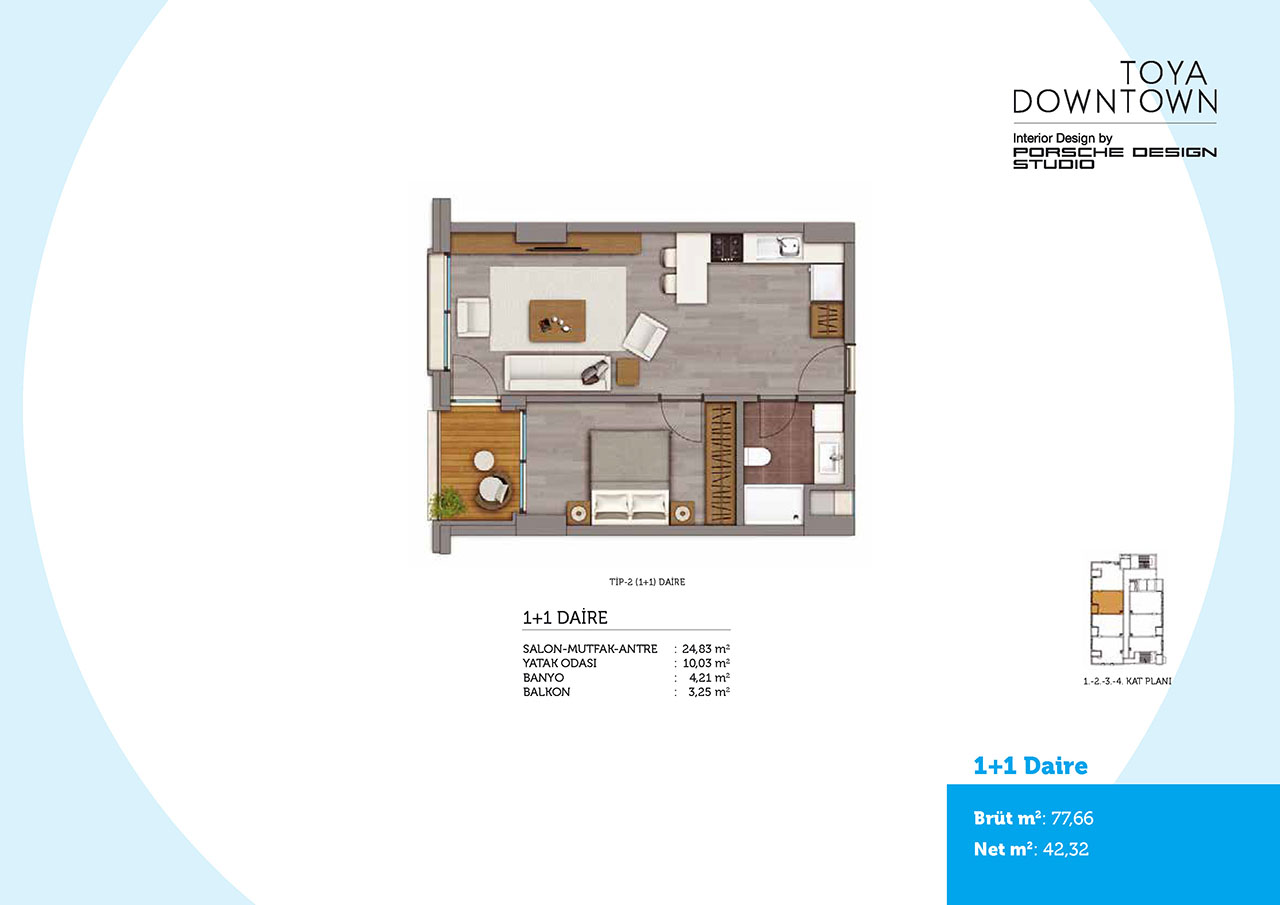 Konutların yanı sıra 6 adet ticari biriminde yer aldığı Toya Downtown projesinde bir ilk gerçekleştirildi. Porsche Desing Studio imzalı dairelerde alanları 16 ila 23 metrekare arasında değişen ofis alanı bulunuyor.