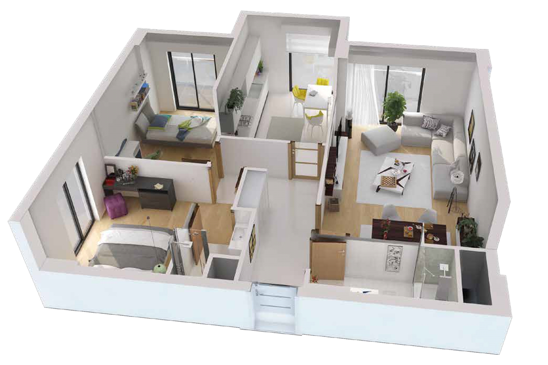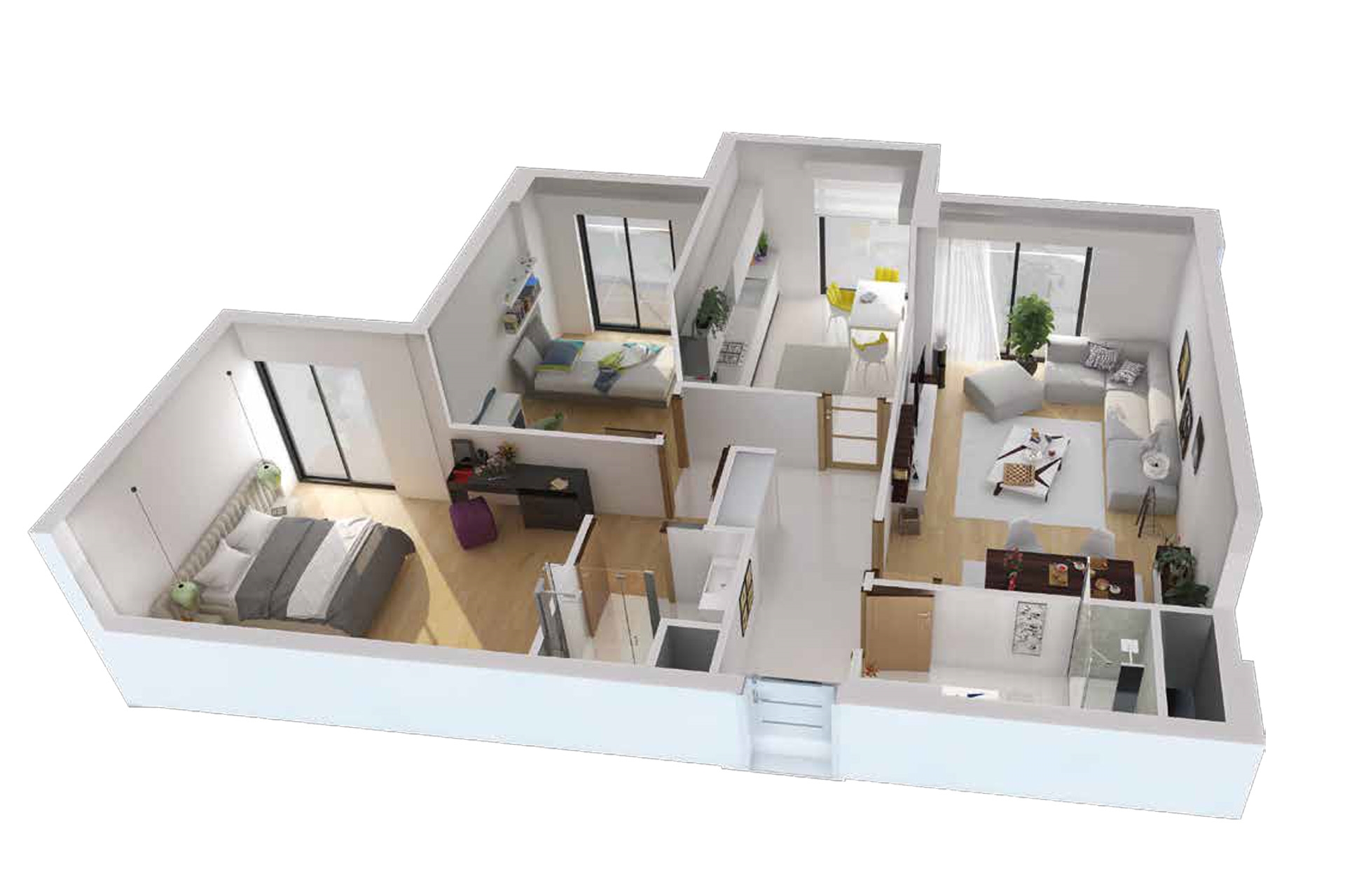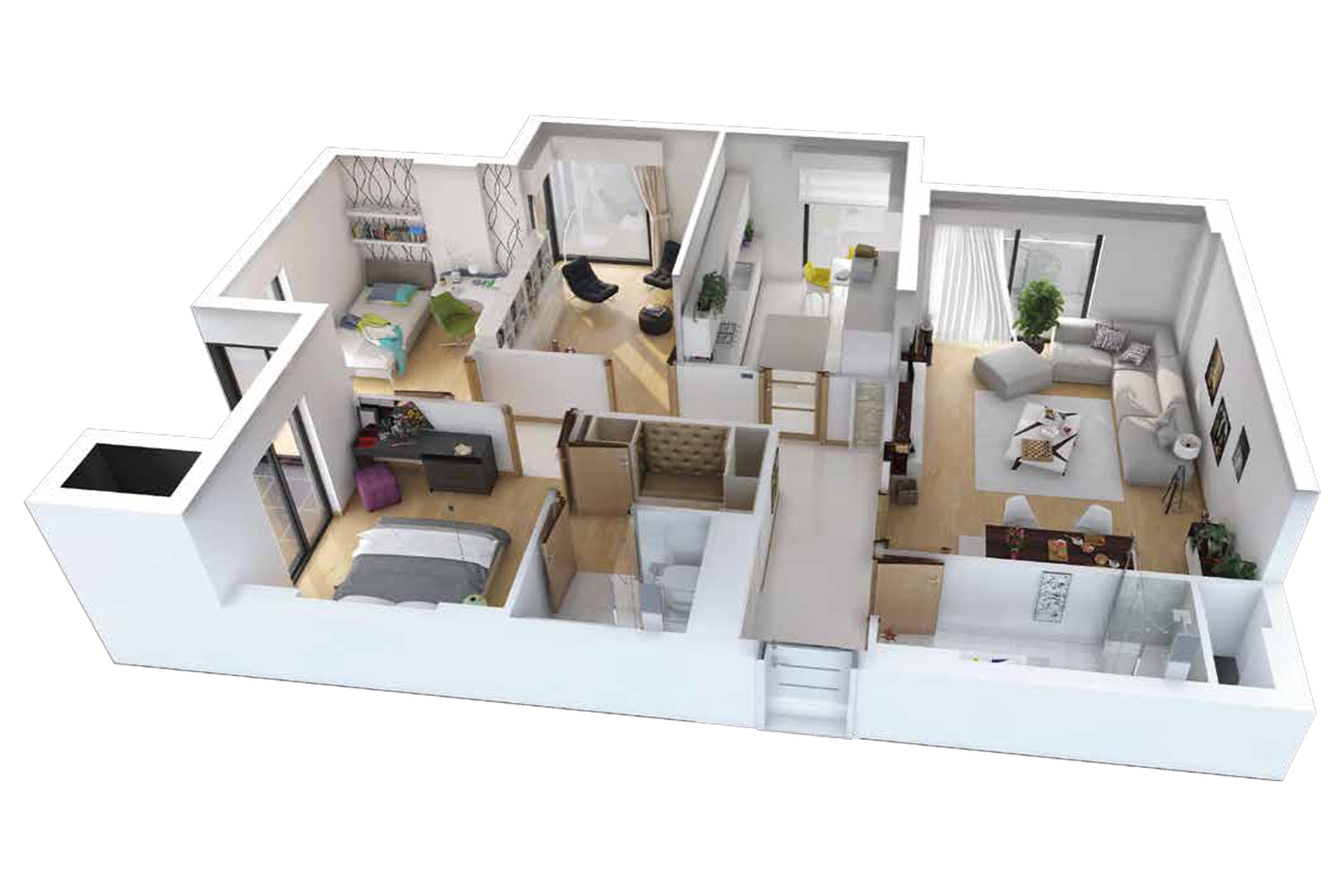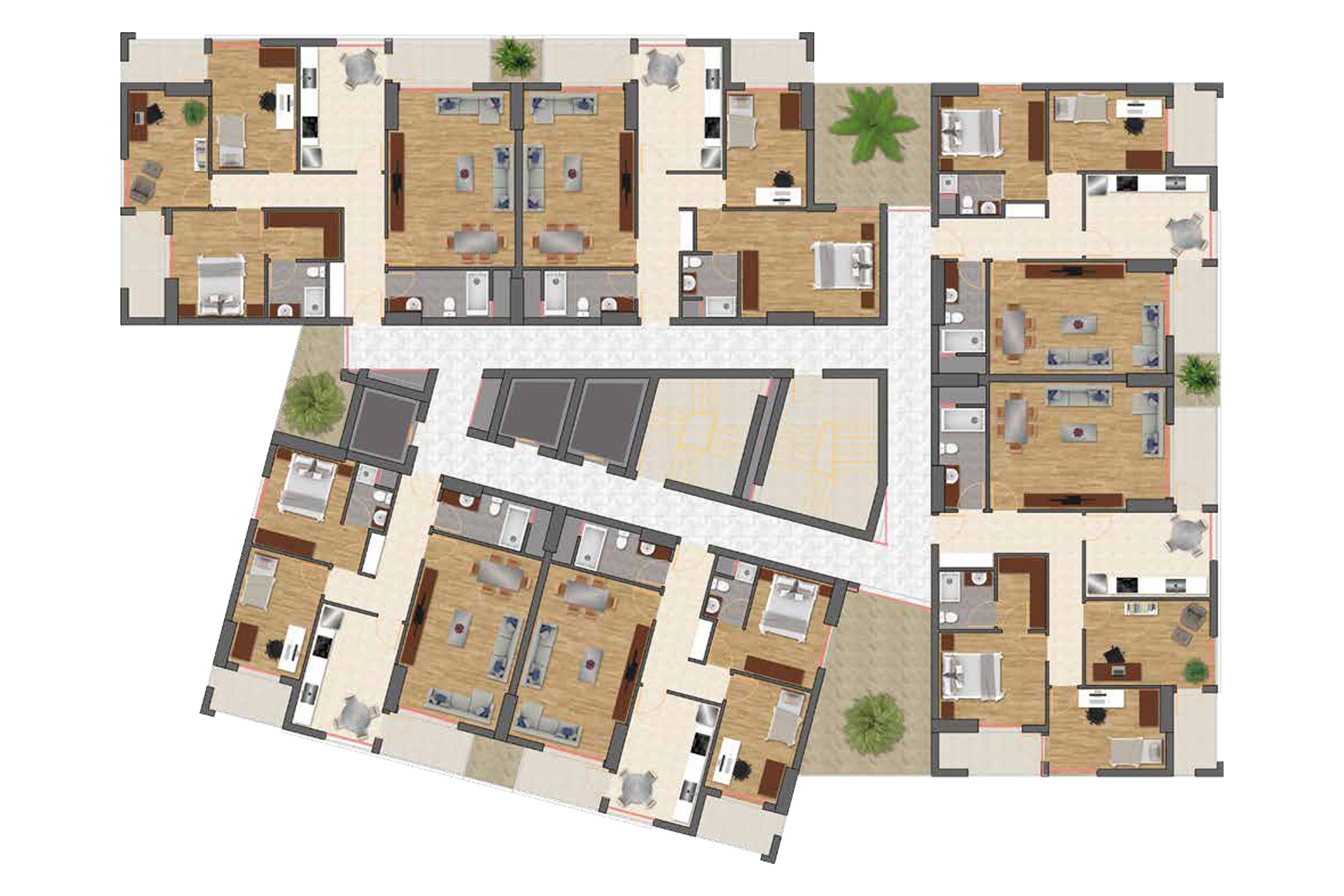 Trio Life projesinde 2 oda 1 salon daireler 123 metrekare ve 132 metrekare, 3 oda 1 salon daireler 155 metrekare büyüklüklerle dizayn edildi.
