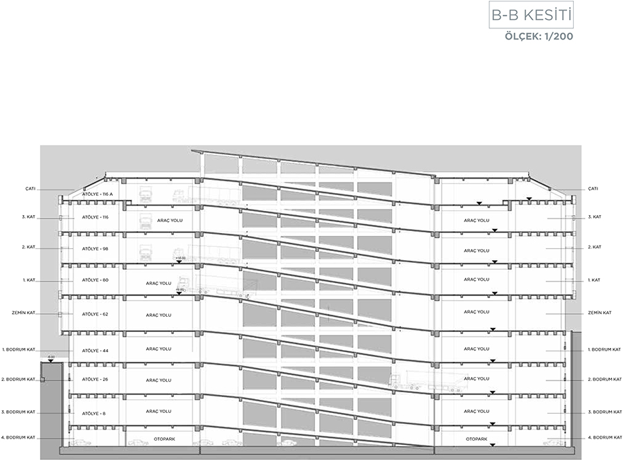 Ağır sanayiye uygun sağlam zeminle inşa edilen projede tavan yüksekliği 7 metre olarak tasarlandı. Projede tırlar her kata çıkabiliyor. Atölye ve dükkanların yüksek enerji altyapısına sahip olacağı proje OSB sınırları içinde yer aldığı için elektrik fiyatlarına özel tarife uygulanacak.