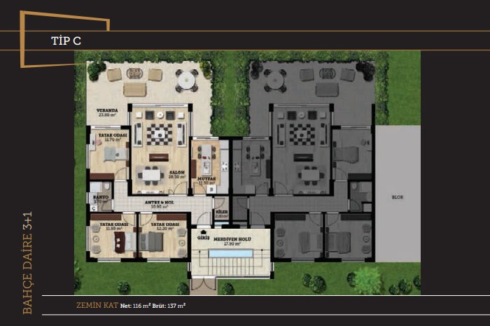 CNS Yapı tecrübesiyle inşa edilen Royal Bademli tamamı 4+1 villalardan projesini yatırımcılara sunuyor.