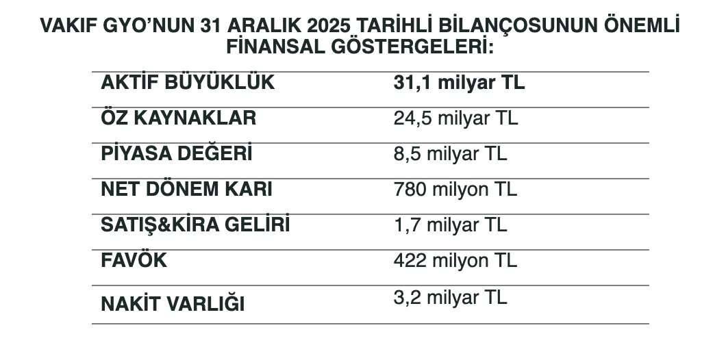 - VAKIF GYO’NUN AKTİF BÜYÜKLÜĞÜ 31,1 MİLYAR TL’YE ULAŞTI