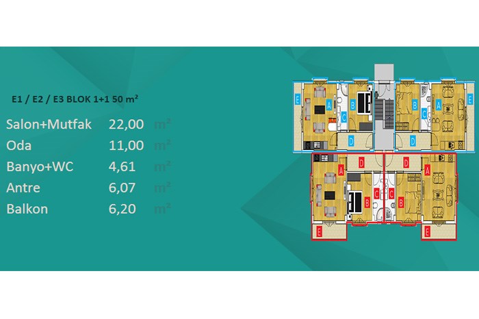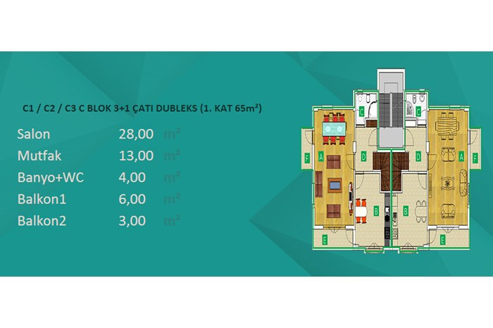 2 oda 1 salon daireler : 98 bin lira ile 110 bin lira arasında değişen ve