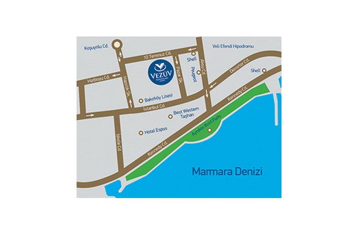 Vezüv Konakları projesi Marmara Forum AVM’ye 1,5 kilometre, Marmaray Tüp Geçiti’ne 3 kilometre, Atatürk Havalimanı’na 3 kilometre, E-5 yoluna 2 kilometre, Bakırkö İDO iskelesine 1,5 kilometr, sahile ise 363 metre mesafede konumlanıyor.