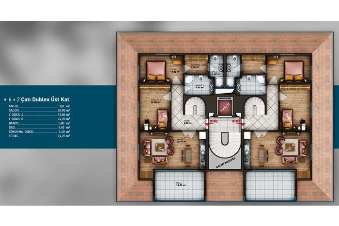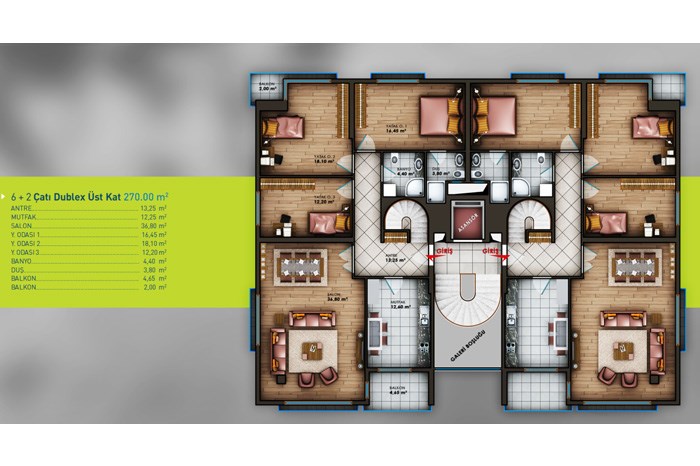 6 oda 2 salon daireler : 615 bin lira ile 655 bin lira arasında değişen fiyatlarla alıcılarını bekliyor.