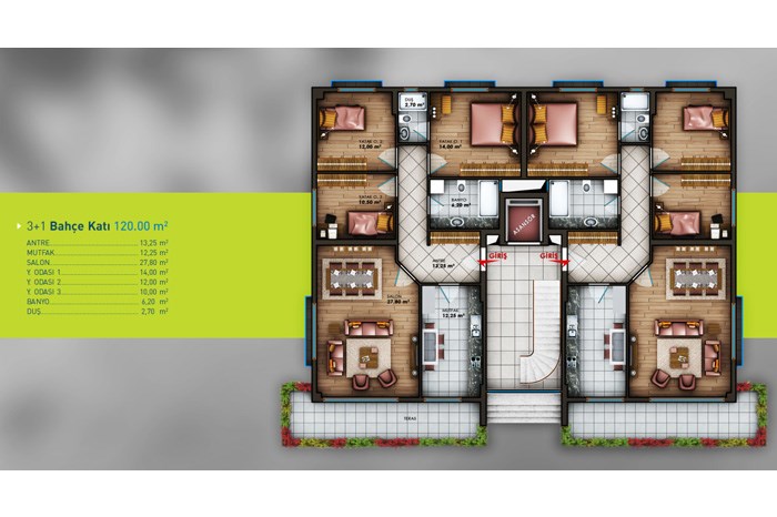3 oda 1 salon daireler : 355 bin lira ile 500 bin lira arasında değişen ve