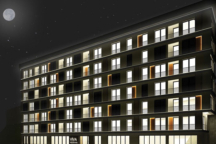 - 4 bin 700 metrekare kapalı alana sahip olan Viva Rezidans'ta her katta 8 daire bulunuyor.