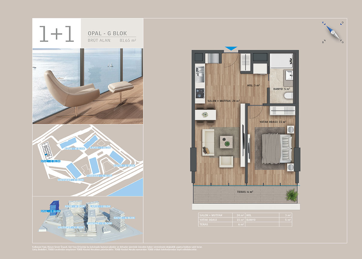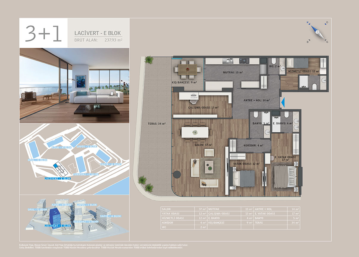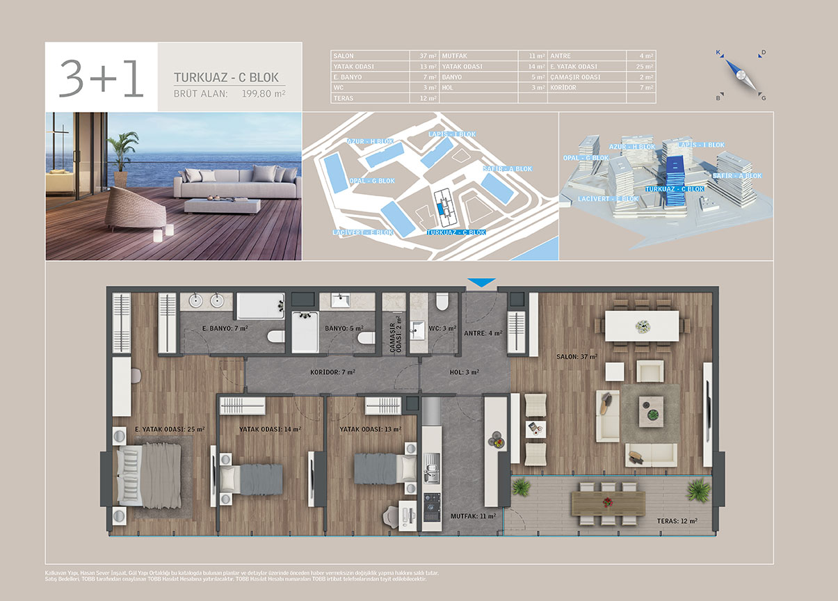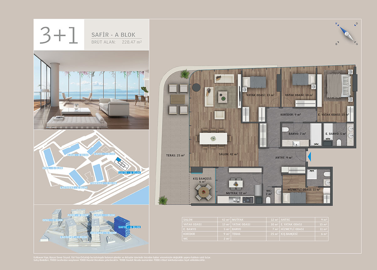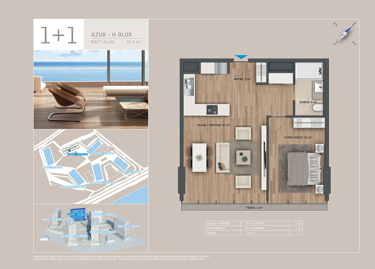 Toplam 566 adet daireden oluşan Yedi Mavi projesinde 1+1, 2+1, 3+1, 4+1 ve 5+1 olmak üzere 5 farklı daire seçeneği yer alıyor. Projede metrekaresi kdv hariç 12 bin TL’den başlıyor.