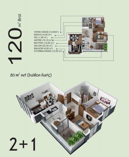 -2+1'ler için 6 bin TL peşinatla aylık 600 TL,