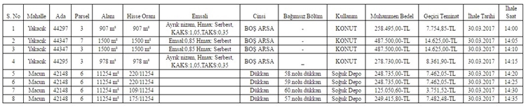 Ankara Yenimahalle Belediye Başkanlığı, mülkiyetinde bulunan 4 adet arsa ile 4 adet dükkanı satışa çıkartıyor...Yenimahalle Belediye Başkanlığı, Yakacık mahallesinde yer alan 4 adet arsa ile, Macun mahallesinde yer alan 4 adet dükkanı açık teklif usulüyle satışa çıkartıyor.
