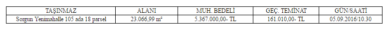 23 bin 66 metrekare alana sahip olan arsa için 5 milyon 367 bin TL isteniyor. Arsanın ihalesi 5 Eylül 2016 günü saat 10:30'da Yozgat İl Özel İdaresi Hizmet Binasındaki İl Encümeni toplantı salonunda gerçekleşecek.
