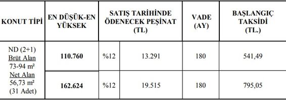 Kura çekilişi yapılacak TOKİ evleri 2+1 daire tipinden, genişlikleri ise brüt 73-94, net 56-73 metrekareden oluşuyor. Niğde Efendibey TOKİ Evleri’nin fiyatları ise 110 bin 760 TL’den başlayıp 162 bin 624 bin TL’ye kadar yükseliyor.